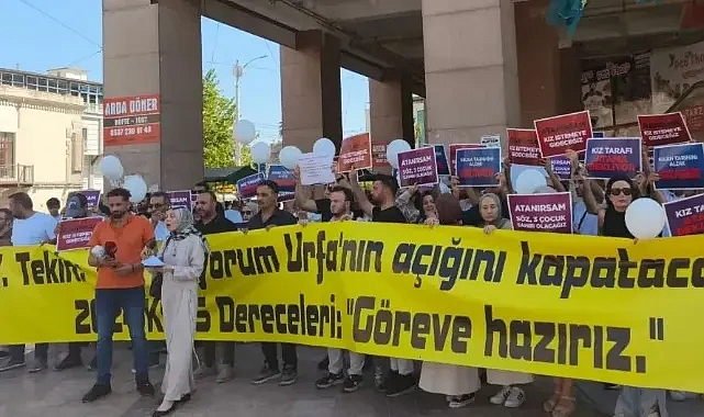 Merkez önünde toplanan kabalalık, ellerine aldıkları dövizlerde,’Nikâh tarihini aldık’,’Atama tarihini bekliyoruz.’,’Atanırsam söz, üç çocuk yapacağım.’,’Anadolu’nun her tarafında görev almaya hazırız.’,’Urfa’nın eğitim açığını kapatacağız.’ sloganlarını atarak yetkililere seslendi.Öğretmenler, basın açıklamasında “KPSS’ye girdik, yeterliliğimizi ispatladık; ama atanamadık. Hakkımız olan kadroları istiyoruz. Tüm branşlarda adil bir atama sürecinin başlatılması ve öğretmen açığının giderilmesini istiyoruz.” ifadelerine yer verdi.Basın açıklamasının ardından kalabalık, sessiz bir şekilde dağıldı.