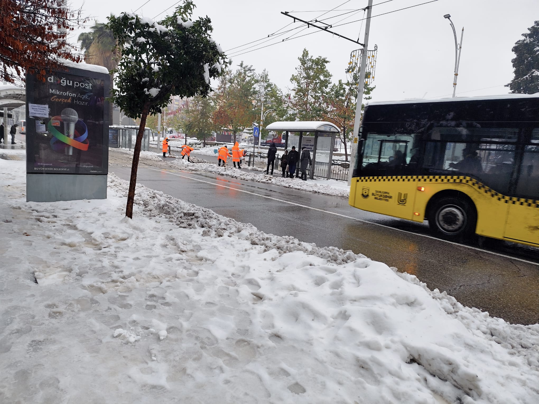Şanlıurfa dün son yılların en yoğun kar yağışıyla karşılaştı. Teyakkuza geçen Büyükşehir ekipleri kentin ana arterlerini açık tutmak için çaba harcadı. Ancak kar yağışı öylesine yoğundu ki temizlenen kesimler kısa sürede tekrar karla kaplandı. Hava sıcaklığının yılbaşı gecesi eksi 1-2'lere düşmesi ve karın buz pistine dönüşmesinden endişe ediliyordu. Korkulduğu gibi olmadı ancak yine de yılın ilk gününde kaldırımlarda yürümek zorlaştı. Şanlıurfa Büyükşehir Belediyesi ekipleri, vatandaşların kayarak düşmesini engellemek adına farklı bir yöntem uyguladı.BEYAZ TAŞLAR KAYGAN, BAZALT TAŞTA YÜRÜYÜNZamandan kazanmak açısından kaldırımlarda sadece yürümeyi zorlaştıran beyaz kaygan taşlar kardan temizlendi. Yürünmesi daha mümkün olduğu için siyah bazalt taşlardaki kar daha sonra temizlenmek üzere öylece bırakıldı. Bu sabah dışarı çıkan ve bu durumu farkedenlerin, düşmemek adına birbirine 'Siyah, bazalt taşların üzerinde yürüyün' uyarısı yaptıkları gözlendi. Öte yandan Şanlıurfa Büyükşehir Belediyesi ekiplerinin dün ara verdikleri karla mücadeleye bugün sabah saatlerinden itibaren Atatürk Bulvarında yeniden başladıkları gözledi.