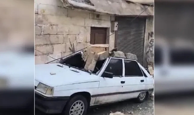 33 KS 636 plakalı otomobil, park halindeyken üzerine duvar devrildi.