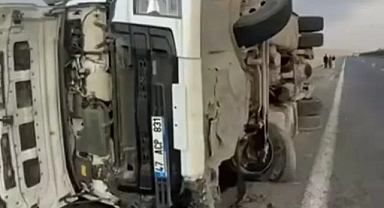 Şanlıurfa – Gaziantep karayolunda TIR devrildi
