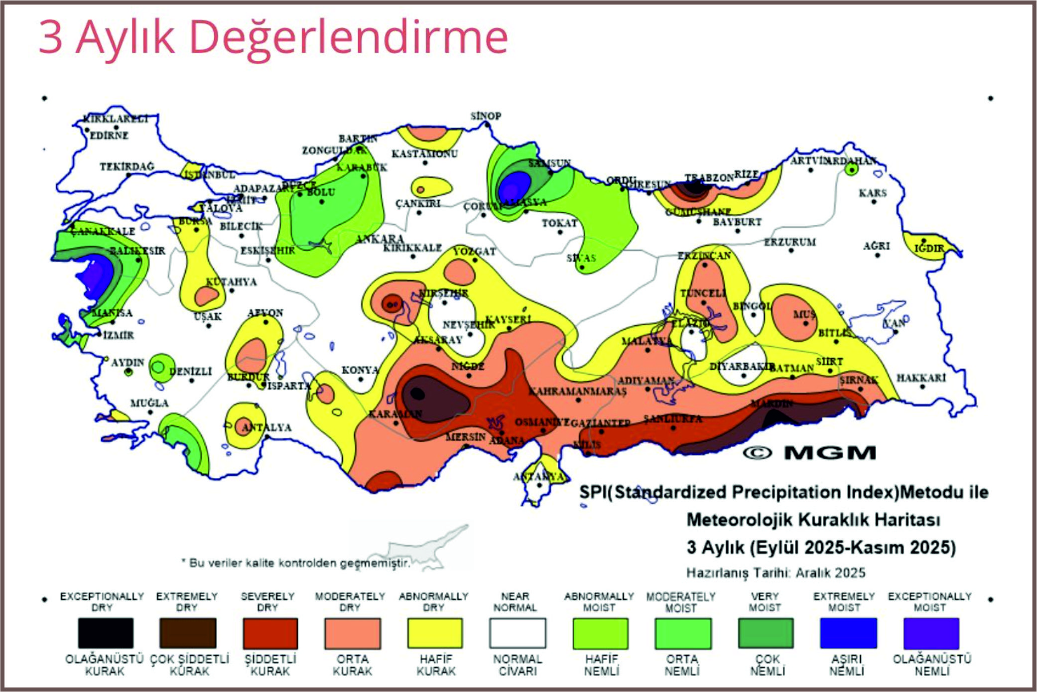 Öte yandan Meteoroloji Genel Müdürlüğü’nün Kasım ayı kuraklık haritaları Türkiye'nin büyük bölümünde şiddetli kuraklık yaşandığını gözler önüne serdi. Günetdoğu Anadolu Bölgesi şiddetli kuraklığın yaşandığı iller arasında gösterildi. Akçakale ve Harran ilçeleri ise olağanüstü kuraklığın yaşandığı yerler arasında bulunuyor.