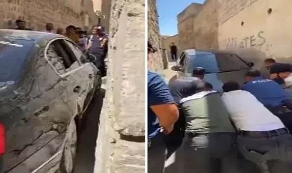 Şanlıurfa'da navigasyon ile bir adrese gitmek isteyen sürücü, aracıyla girdiği dar sokakta sıkıştı. Sürücünün yardımına emniyet güçleri ve vatandaşlar yetişti.