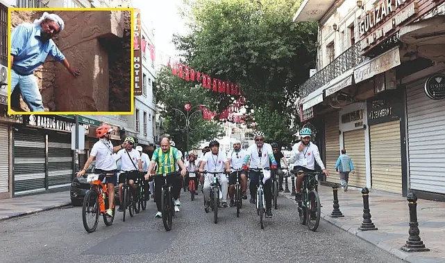 Bisikletçiler, Prof. Dr. Klaus Schmidt’in Göbeklitepe arkeolojik kazılar sırasında konakladığı Eyyübiye ilçesi Kadıoğlu Mahallesi’nde bulunan Urfa Evi evi önünde toplandı.