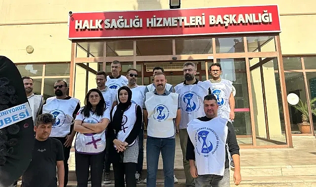 SES Şubesi üyeleri bugün Şanlıurfa Halk Sağlığı binası önüne siyah çelenk bırakı