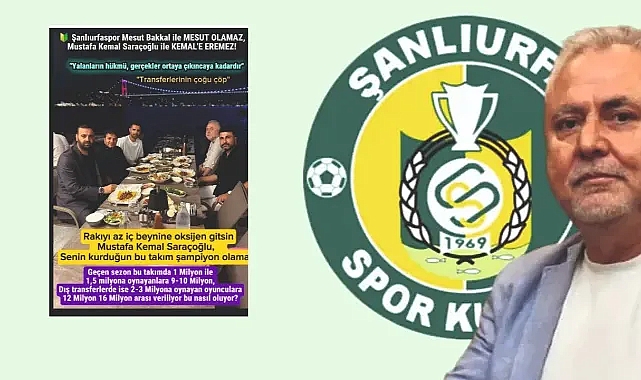 Şanlıurfaspor'a oyuncu pazarlamaya çalışan Ahmet Ö. adlı bir menejerin, istekleri gerçekleşmeyince sosyal medyadan Kulüp Başkanı Kemal Saraçoğlu'nu hedef alan sözler kullanması tepkilere yol açtı. Saraçoğlu'na sosyal medya platformlarından çok sayıda destek mesajı geldi. Ahmet Ö.'nün Saraçoğlu için kullandığı, '“Rakıyı az iç beynine oksijen gitsin, senin kurduğun takım asla şampiyon olamaz” sözleri sert tepkileri beraberinde getirdi. 1 MİLYONLUK OYUNCUYA 3-5 MİLYON VERENİ NEDEN YAZMADINSosyal medyaya yansıyan destek mesajlarından bazıları şöyle:Ahmet Saraç: Şampiyon olduğu zaman Urfaspor siyasilerin takımıydı siyaset uğruna sayın Kemal Saraçoğlu'nu bu memleket harcadı. Kemal başkandan sonra siyasilerin adamları har vurdu harman savurdu, sonunda ne oldu? Kulüp borclu, yardım eden yok ,kaderine terk edildi, dönemin Valisi doldurmacı, Bakanı jöleciydi, hepisi düşman oldu Kemal başkana. Ne polisi kaldı, ne savcısı.. Hepisi kulüpte inceleme yaptı. Ne oldu da böyle oldu, sorgulayan olmadı. Urfaspor'da dünyanın yolsuzluğu yapıldı, kimsenin çıtı çıkmadı. Sayın Kemal Başkanın suçu neydi? Protokolde kimseye yalakalık etmedi diye başına bu işler geldi. Bu memlekin insanı çıkarı için birbirini hafif tartar. Bu olaylar bir başkasına yapılmış olsaydı, Urfayı terk ederdi. Geçen yıl idda oynayanları maç satanları neden yazmadın Ahmet Ö. efendi.? Bir milyonluk futbolcuya 3-5 milyon verenleri neden kaleme almadın, Kemal başkana sarf ettiğin kelimeleri kabul etmiyorum sizi kınıyorum.KİRLİ ELLERİMNİZİ ÇEKİN ŞANLI TAKIMIN ÜSTÜNDENHalil Aslan: Önce iğneyi kendine batır, sonra çuvaldızı başkasına. Senin marka futbol mu ne karın agrısıysa, nasıl ayakta duruyor onu çok iyi bilen biriyim. O yüzden de o kirli ellerinizi çekin Şanlı takımın üstünden. Hadi başka kapıya, sen şimdiden kime ödül vereceksin onun planlamasını yap!Mehmet Üçburak: Bir kişinin özel yaşamına karışmak hadsizliktir. Bu saygısızlık Şanlı takıma yapılmıştır, kınıyorum.Mehmet Emin Ak: Çok ayıp. Bulunan mekânda içki içme gibi yer yok, sadece yemek yeme yeridir. Kemal başkanın çok emeği var bu takıma. Sabırlı olmak gerekir.Ali Tutak Seyitoğlu: Sen Özurfalı değilsin, olsaydın koskoca Şanlurfaspor camiasına ve başkanına küstahça saldırmazdın. Ayıp ve utanma insanda olmalı. Saraçoğlu başkanımıza ve Şanlurfaspor camiasına hakaret eden her kimse şiddetle kınıyorum.