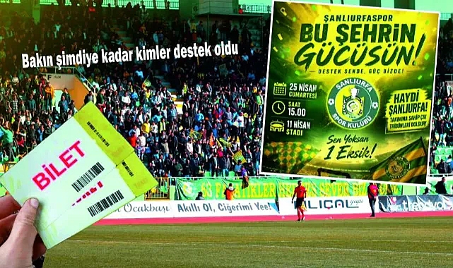 Şanlıurfaspor Yönetim Kurulu, önümüzdeki Cumartesi günü Sincan Belediyesi Ankaraspor'la oynanacak maçta 11 Nisan Stadyumunu tamamen doldurmayı hedefliyor. Bu amaçla dün başlatılan bilet kampanyası giderek büyüyor. HEDEF 30 BİN TARAFTAR!Kulübün sosyal medya hesaplarından yapılan paylaşımda, şehrin tek yürek olması gerektiğine vurgu yapılarak, ''Cumartesi saat 15:00’te yerimizi alıyoruz, sesimizi yükseltiyoruz! Sen yoksan 1 kişi eksiğiz! Haydi Şanlıurfa, omuz omuza!'' denildi. KİMLER BİLET ALDI?Taraftarlara ücretsiz dağıtılmak üzere bilet satın alanlar kulübün resmi sosyal medya hesaplarından duyuruluyor.İşte bugüne kadar bilet alanlar:Ali Murat Bucak (Siverek Belediye Başkanı): 1000 adetKızılkaya Tarım: 1000 adet biletTalat Baytemur (İş İnsanı): 500 adet biletÖzel ŞANMED Hastanesi, Av.Ramazan Arkan ve AK Parti Karaköprü İlçe Başkanı Av. Orhan Çelik de maç bileti alanlar arasında yer aldı ancak kaç bilet aldıkları belirtilmedi.